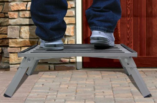 LARGE CAPACITY EXTRA, Imagine a wider standing space than a ladder? Our large capacity folding steel step stool can make washing the car, cleaning, reaching, painting easier on your arms and back. Sturdy steel construction with tread top and feet and locking legs for added stability. Each measures: 19" x 14 1/2" x 8"H and gives you a large stable platform for use around the house or garage, plus you don't have to move it as often as a ladder. Its the perfect height to reach the most high places. Anti-tip design insures support and safety and folds flat for easy transport and storage. Holds up to 500 pounds.